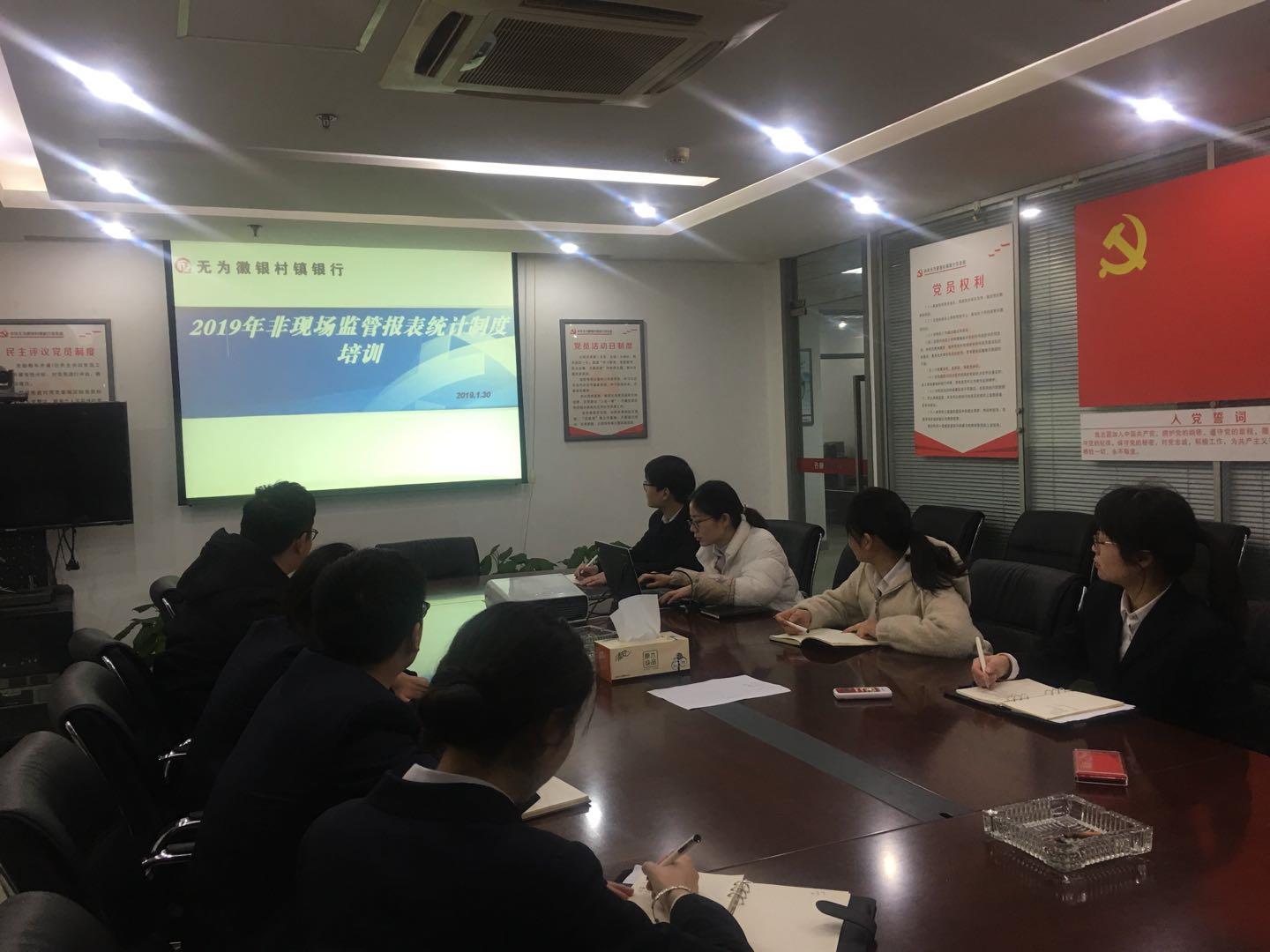 - 为切实做好2019年非现场监管报表统计制度的贯彻执行,帮助全行统计人员及时掌握新的制度要求,1月30日下午,我行组织开展了非现场监管报表统计制度培训工作,各部门统计员人员参加培训。