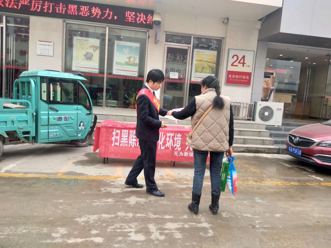 2019年04月19日,为进一步落实关于做好扫黑除恶专项斗争的有关工作要求,襄安支行组织员工开展扫黑除恶宣传活动。