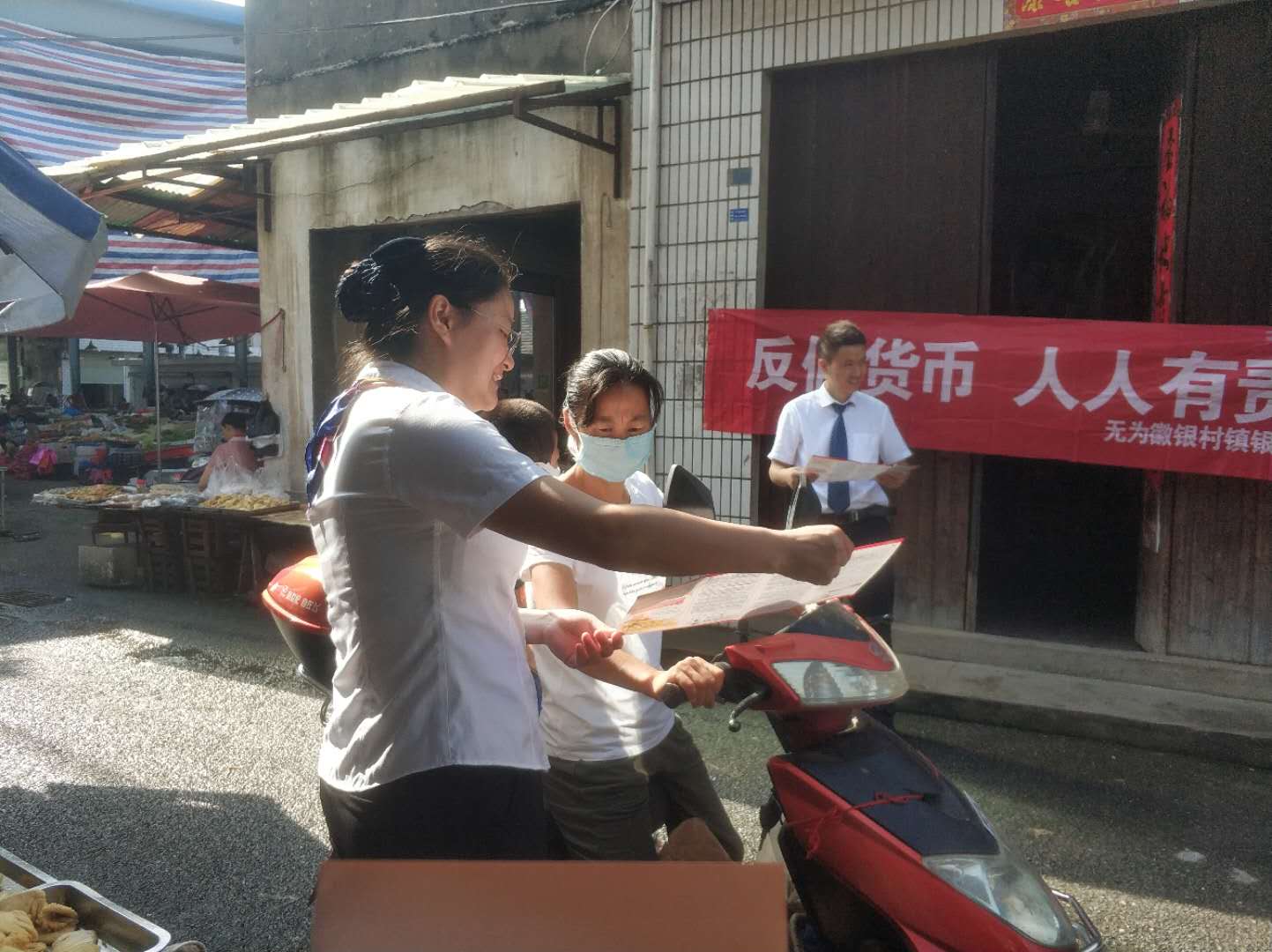 7月7日上午,牛埠支行组织员工在牛埠镇菜市场开展“反假货币、人人有责”宣传活动。