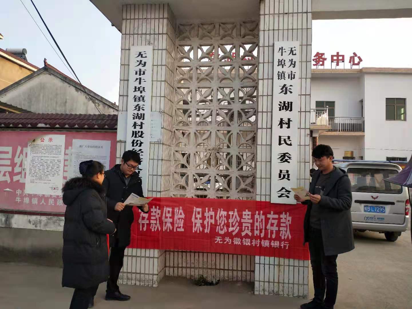 为增强社会群众对金融机构的信任度,更好地保护存款人的合法权益,维护银行业经营秩序和金融稳定,12月25日,牛埠支行在东湖行政村组织开展“存款保险”宣传活动。