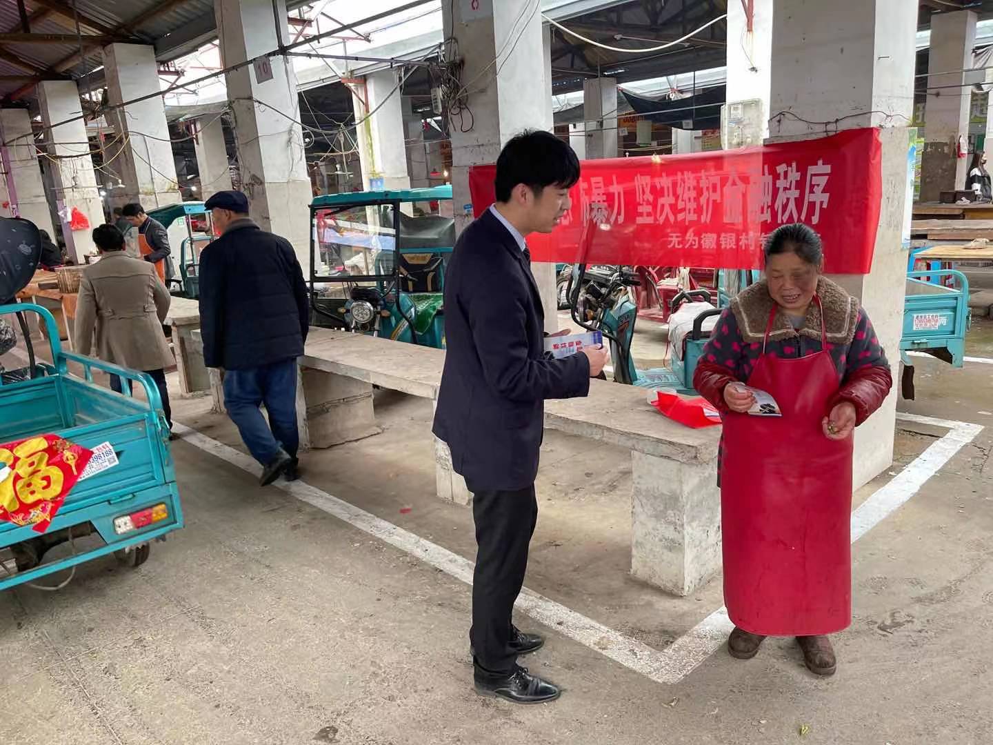 4月1日上午,襄安支行前往当地农贸市场开展“依法打击恐怖暴力 坚决维护金融秩序”主题金融知识宣传活动。