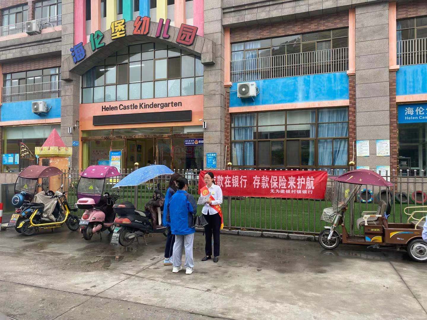 根据安排,我部此次宣传地点设在无为县海伦堡幼儿园门口,重点面向教师及学生家长等人群,以张贴横幅、发放折页等宣传方式,着重宣传讲解有关存款保险方面的金融知识,对存款保险的范围、保障金额及受赔方式进行详细的讲解。