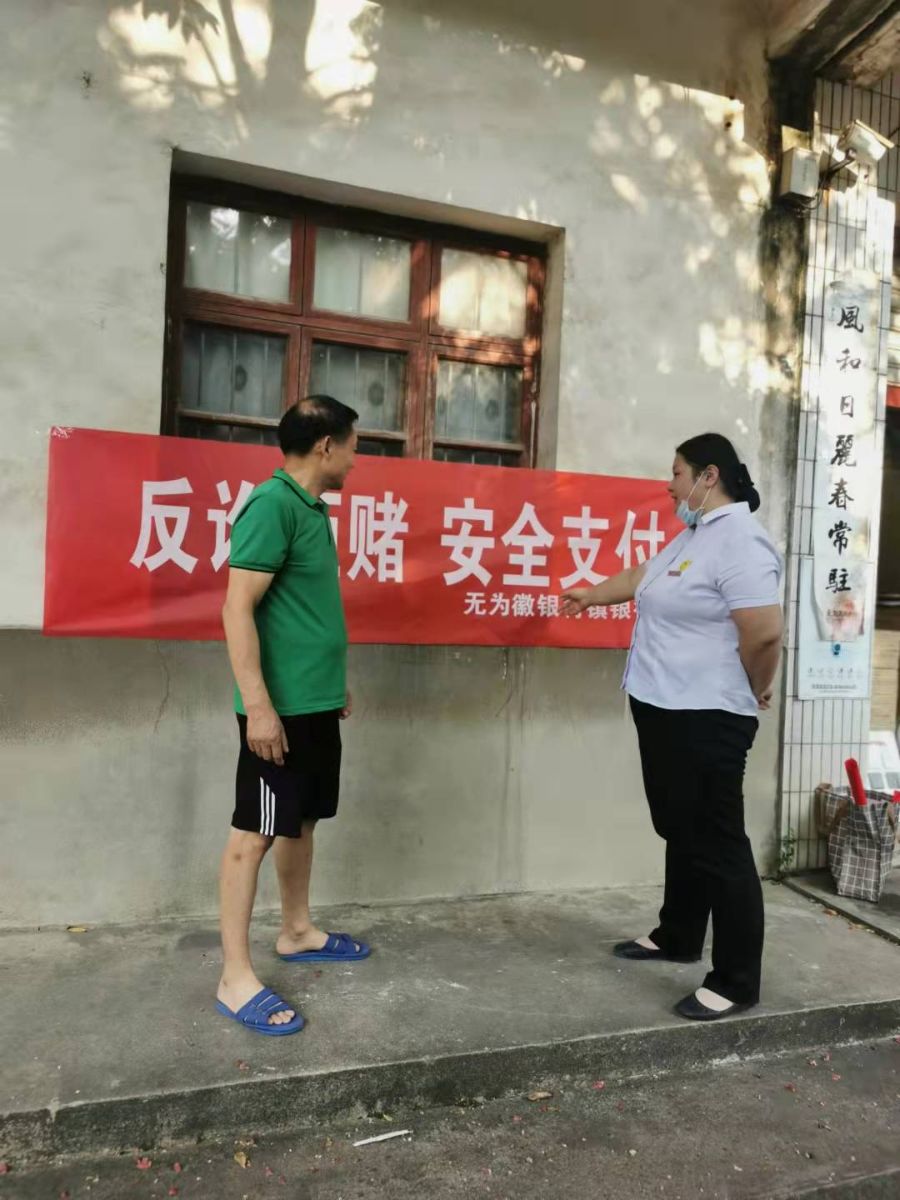 活动中,支行员工向来往群众发放防范电信诈骗宣传折页,以图文并茂的形式向公众介绍电信网络诈骗的特点、遭遇电信网络诈骗后的应急措施、防范电信网络诈骗小技巧及电信诈骗的常见手段等一系列知识,引导客户关注国家反诈中心相关公众号,针对周边商户与代发企业,支行还面对面进行一系列反诈拒赌宣传。