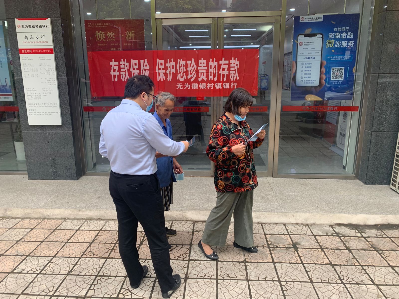- 为积极践行社会责任,进一步增强社会公众对存款保险制度的理解,提升存款保险社会公众认知度,5月20日,高沟支行在网点附近开展存款保险知识宣传活动。