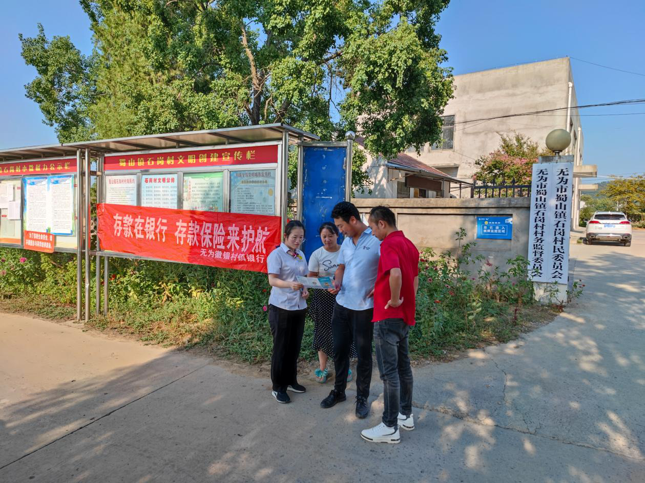为进一步提高乡镇居民对存款保险的认识,推动存款保险知识普及。9月6日下午,蜀山支行组织员工来到蜀山镇石岗村开展存款保险宣传活动。